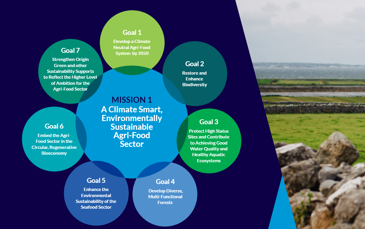 The strategy is based on four missions and 22 goals but, most relevant here, is mission number-one: a climate smart, environmentally sustainable agri-food sector which has seven goals attached: