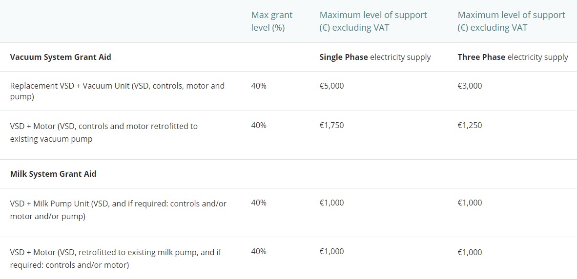 According to the SEAI, the grant provides financial support for the installation of variable speed drive vacuum and milk pump technology.