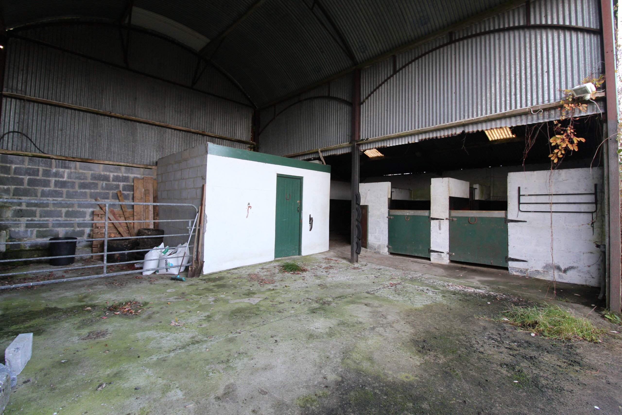 It is divided into two: c.7ac is good quality grazing lands; while c.7ac is bogland. Included within the sale are four stables, a tack room, a hayshed and an outdoor sand arena.