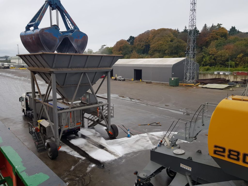 At the port in Belview, the Urea fertiliser is being loaded off the boat and transported via lorry to Target Fertilisers’ base for bagging.