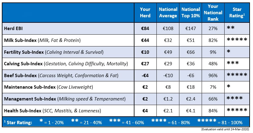 We have included a new ‘Herd EBI Scorecard’ (below), which details your herd’s EBI and the sub-index breakdown.