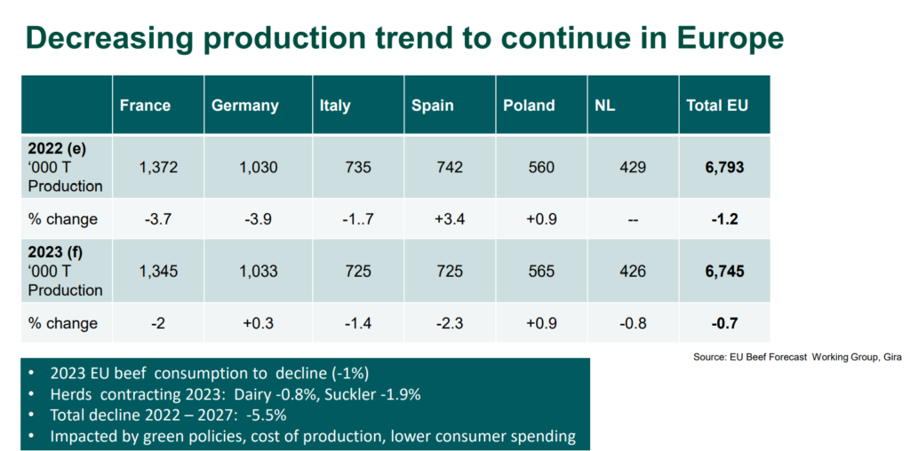 "That's because the European herd is contracting, the dairy herd by 0.8% and the suckler herd by 1.9% and a long-term decline is being projected of 5.5% up to 2027."