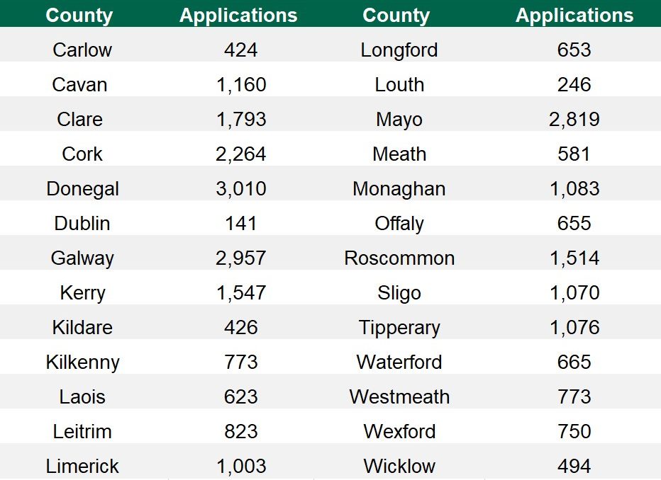 In a statement, the Department of Agriculture, Food and the Marine said the number of applications were “in line” with last year’s effort.