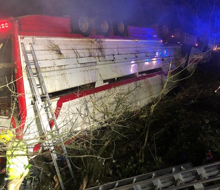A spokesman for NI Fire and Rescue Service said: “At around 6:30am this morning, our Regional Control Centre received reports of an articulated lorry overturned at Cavan Road, Newtownbutler.