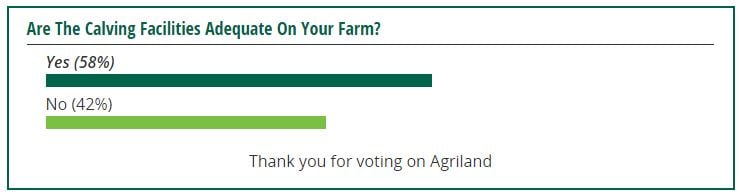 The poll results also show that 42% of farmers feel the calving facilities on their farm are not adequate.