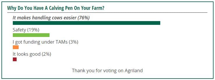 Surprisingly, only 19% of farmers said they installed a calving pen for safety reasons, while a further 3% though it was a good investment opportunity under the TAMS.