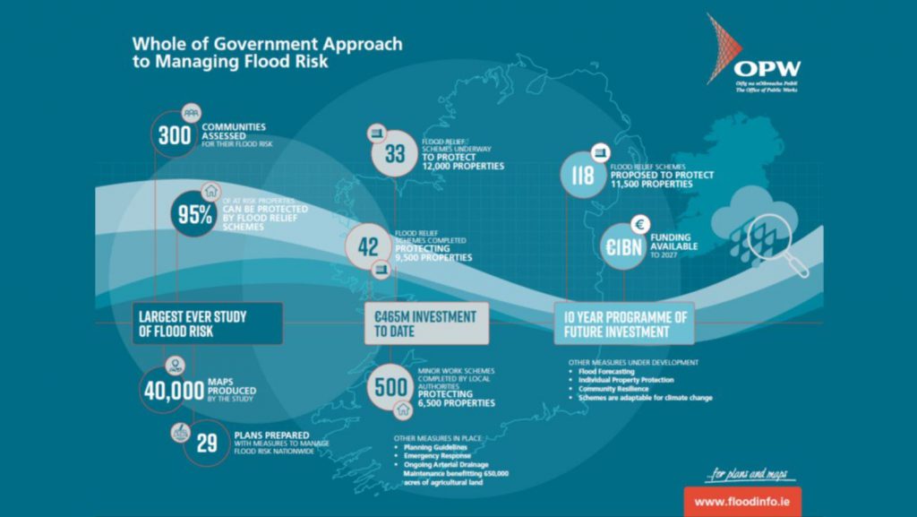 These schemes successfully provide protection to 9,500 properties and the economic benefit to the state in damage and losses avoided are estimated at €1.9 billion.