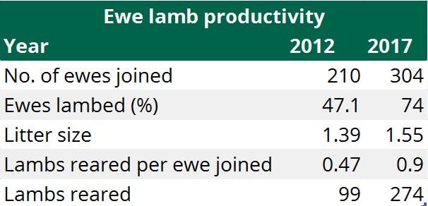 In total, some 274 lambs were reared from the ewe lambs. That’s 0.9 lambs per ewe lamb joined to the ram.