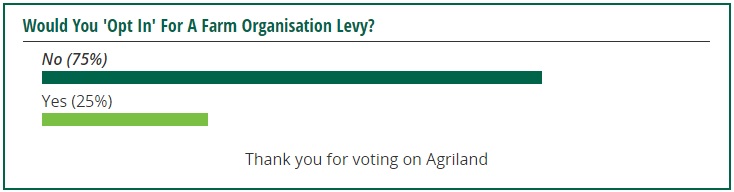 Some 75% of farmers would not opt in to pay a farm organisation levy, known as the European Involvement Fund (EIF) levy, an Agriland poll has revealed.
