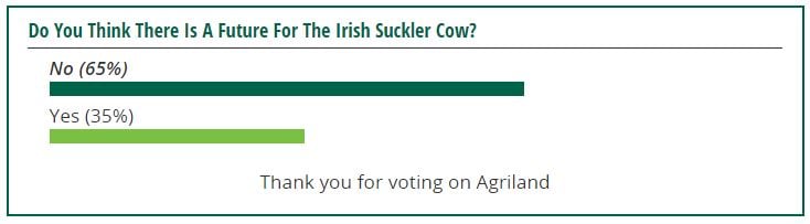 Beef farmers also had to contend with falling beef prices and volatility in the market caused by a 80,000 head increase in beef cattle supplies and the fallout from the Brexit vote in the UK.Meanwhile, the poll results also show that many farmers don’t see a future for the Irish suckler cow, with 65% of the poll respondents saying they don’t see a future for such enterprises.