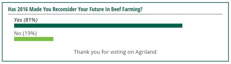 Some 81% of farmers said they would reconsider their future in beef farming after 2016, a recent Agriland poll has found.