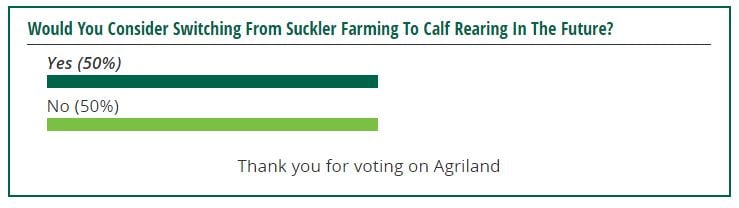 Some 50% of farmers said the would consider moving away from suckler farming to calf rearing, while the remaining 50% said they wouldn’t.