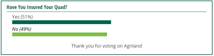 A second Agriland poll found that some 51% of farmers have their quad insured while 49% said that their quad wasn’t insured.
