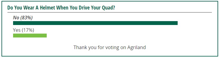 Some 83% of Irish farmers do not wear a helmet when they drive a quad, a recent Agriland poll has found.