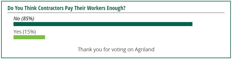 Some 85% of respondents to a poll on Agriland believe that contractors do not pay their workers enough money.