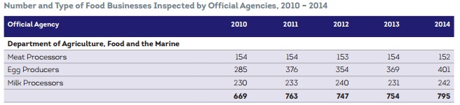 In 2014, 152 meat processors, 401 egg producers and 242 milk processors were inspected.