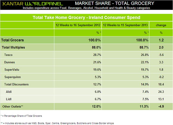 The latest supermarket share figures from Kantar Worldpanel in Ireland, published today for the 12 weeks ending 15 September, show a strong performance from Dunnes with the retailer successfully encouraging shoppers to spend more.