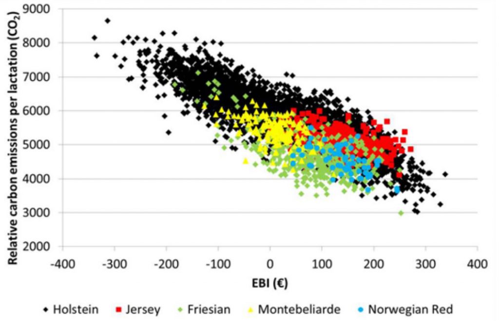 “If you do the math on that, each €10 improvement in EBI is associated with a reduction of 61.7kg of CO2 equivalents per lactation. But remember it is cumulative and permanent.”