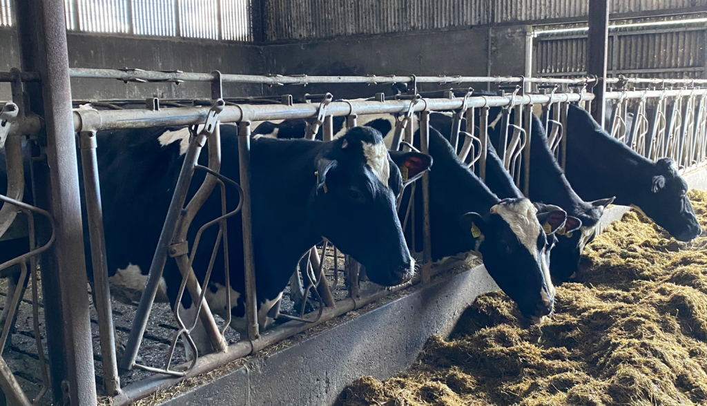 John is fattening cull cows at the moment too. These cows are on a finishing diet of 6kg beet, 5kg of a 30% maize meal nut and good-quality silage. They will start coming fit for slaughter in the coming weeks as well.