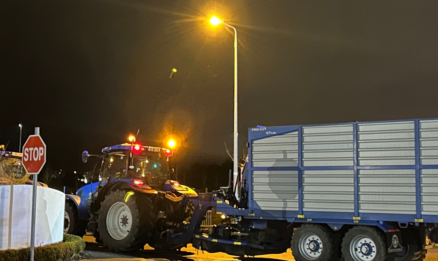 The group of farmers and contractors said they were not representative of any farmer organisation, were not protesting as a show of solidarity with European farmers and had come together tonight to voice their "frustrations".