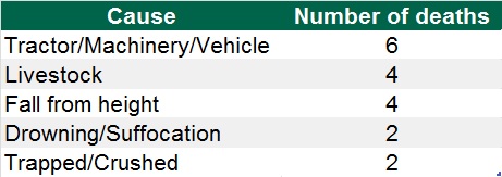 Six farm fatalities were involving a tractor or machinery and four were involving livestock.