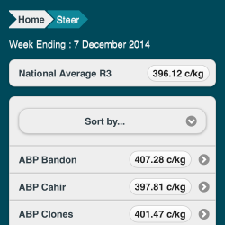 It presents beef producers with a comparison for a representative group of animals in each category, such as the average R3 price for Steers and Heifers, and the average U3 price for Young Bulls. Behind these representative prices, the user is one click away from detailed information, at factory level, for prices across the entire 15 x 15 beef carcass classification grid.