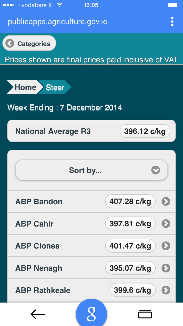 The ‘Beef PriceWatch App’ provides, each week, the average price at national and individual factory level for steers, heifers, cows, and young and old bulls.