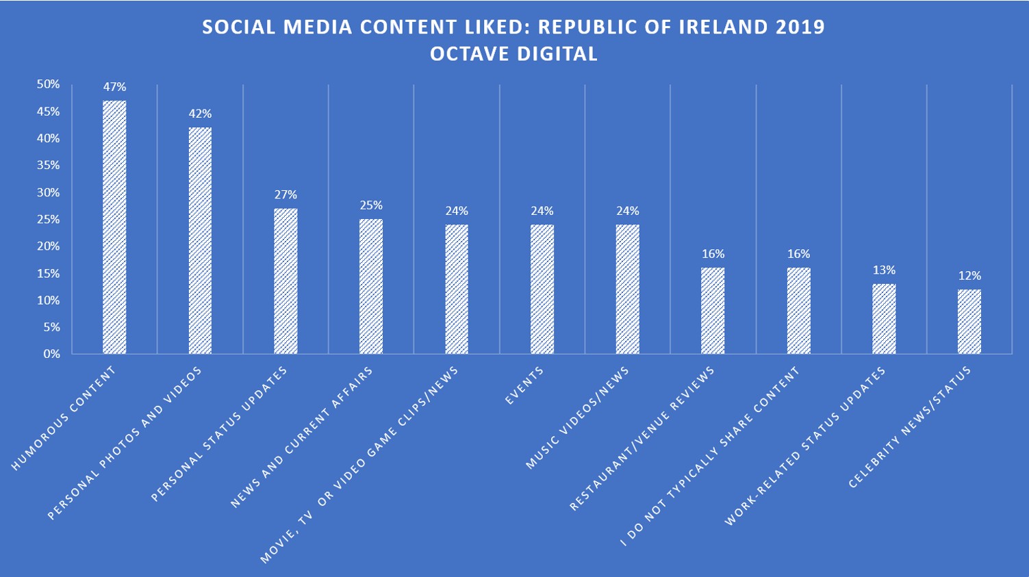 The following chart demonstrates the type of content liked by users across a range of social media platforms.