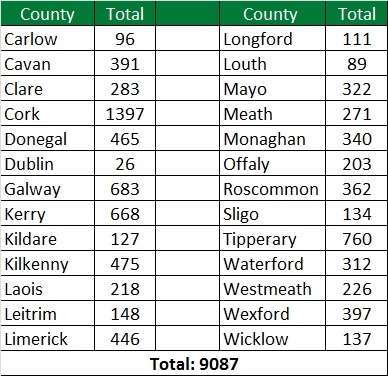 The Minister also outlined the number of applications to TAMS II to date on a county-by-county basis: