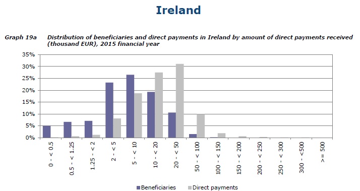 Almost 50% of Ireland’s national envelope for direct payments is received by farmers getting over €20,000. Of this number, approximately 4% of farmers are receiving over €50,000 – which is almost equivalent to 15% of total payments.