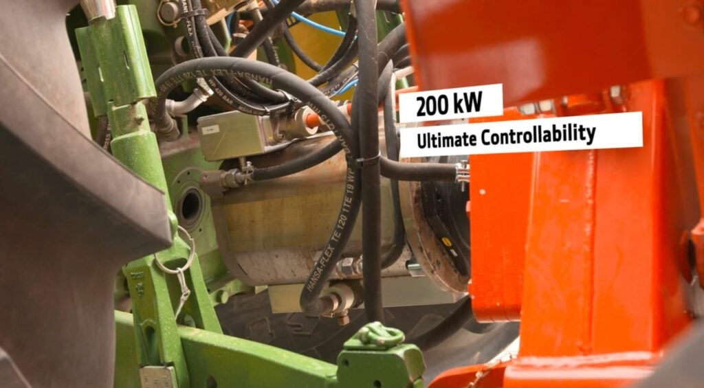 The tractor is reportedly home to a 100kW all-electric drive-train; 200kW (electric power) off-boarding is available for implements on the rear.