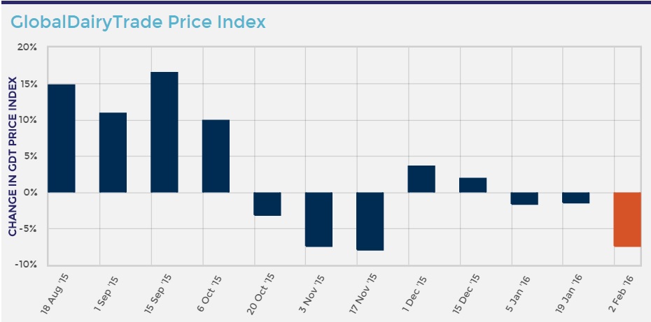 The last two Global Dairy Trade auctions also recorded declines of 1.4% and 1.6% respectively.