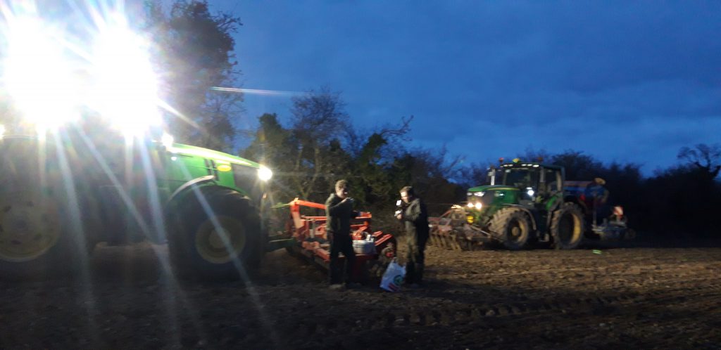 In the surrounding field, Frank Hughes was sowing with his John Deere 750A drill.