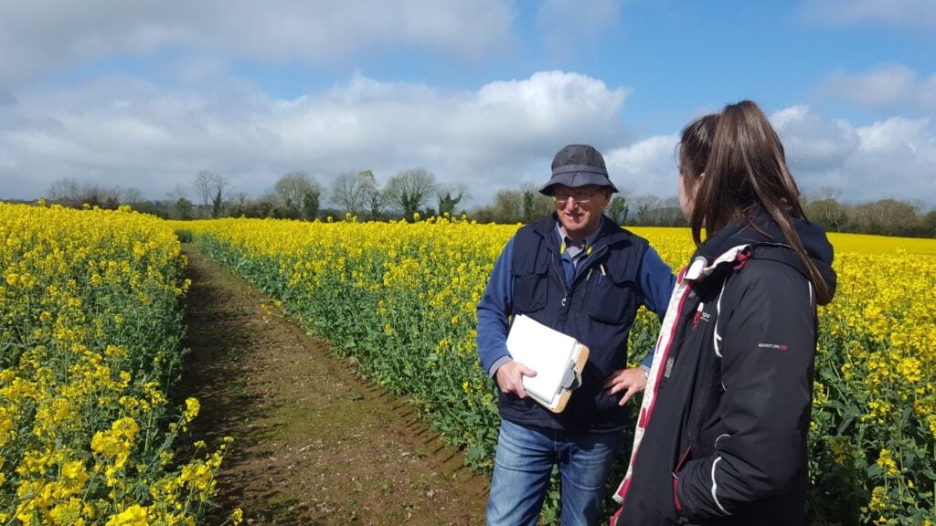 Patsy Kehoe was busy showing Waterford IT students around the Seedtech trial site in Co. Waterford this week. He’s pictured talking to student Helen Morrissey.