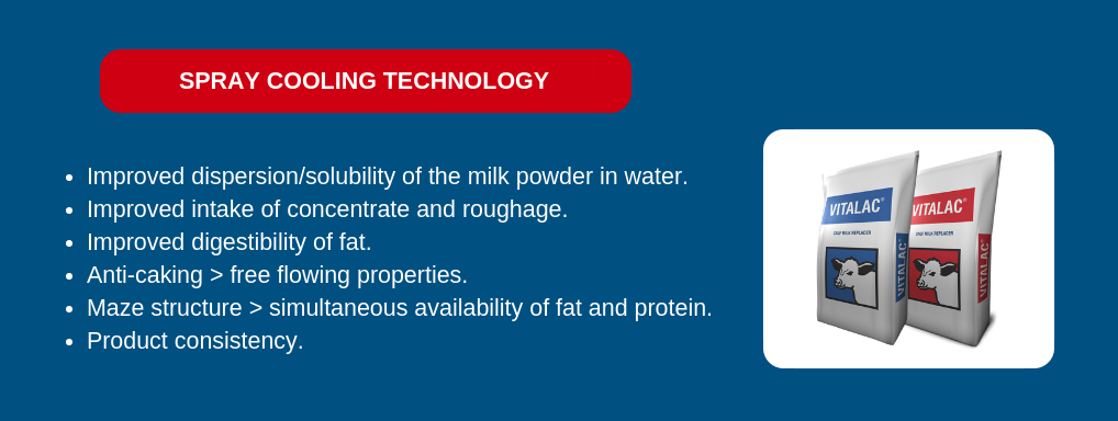 John states: “The spray cooling technology used in our manufacturing process has shown to improve fat digestibility, feed intakes and milk powder solubility.”