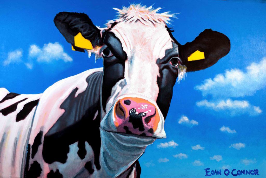 Artist Eoin O’Connor is known for his cow paintings but, in the absence of his own stock, has to turn to his farmer friends’ cows as muses.