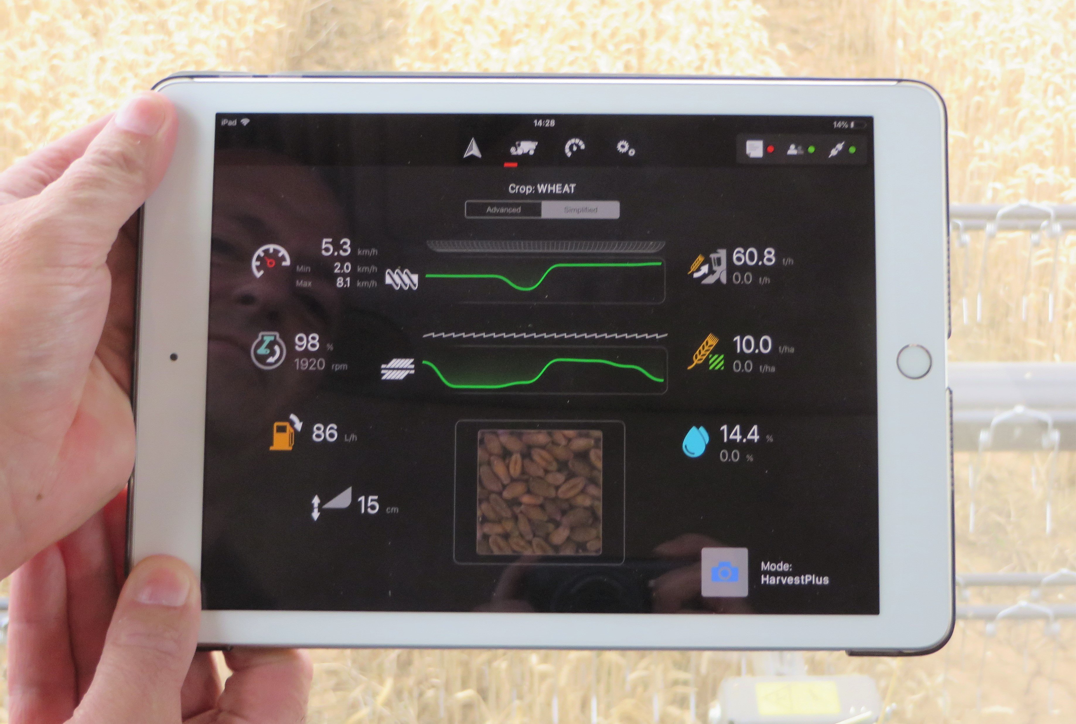 Data from the sensors is displayed via an iPad app, allowing the operator – or a farm manager in the field whose own iPad is connected to the combine – to fine-tune rotor or concave settings.