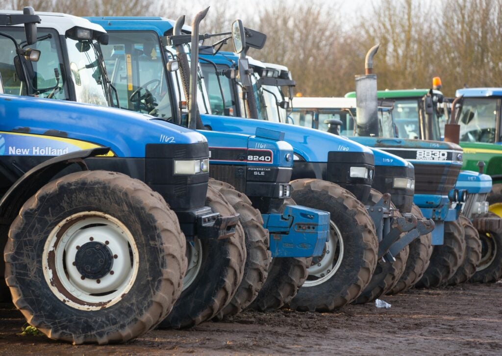 This report focuses on the older Ford / New Holland tractors present – ranging (in this report) from an original-looking 4600 up to a couple of (white-roof; SLE) 8240 models.