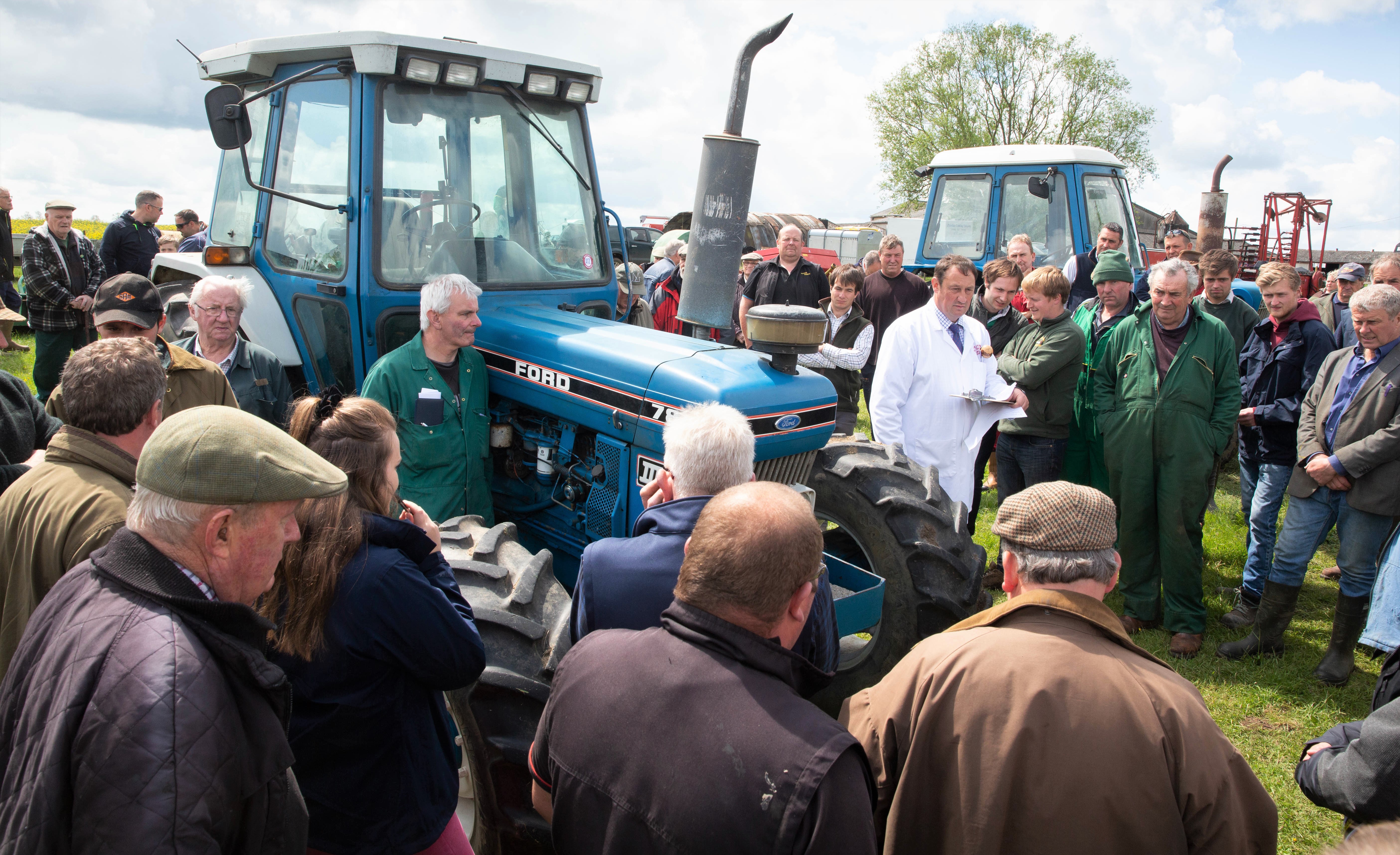 Saturday, May 11, saw an aging MF combine harvester, a clatter of Ford tractors and umpteen implements/trailers offered for sale at an auction at Mount Pleasant Farm, Winwick, Cambridgeshire, England.