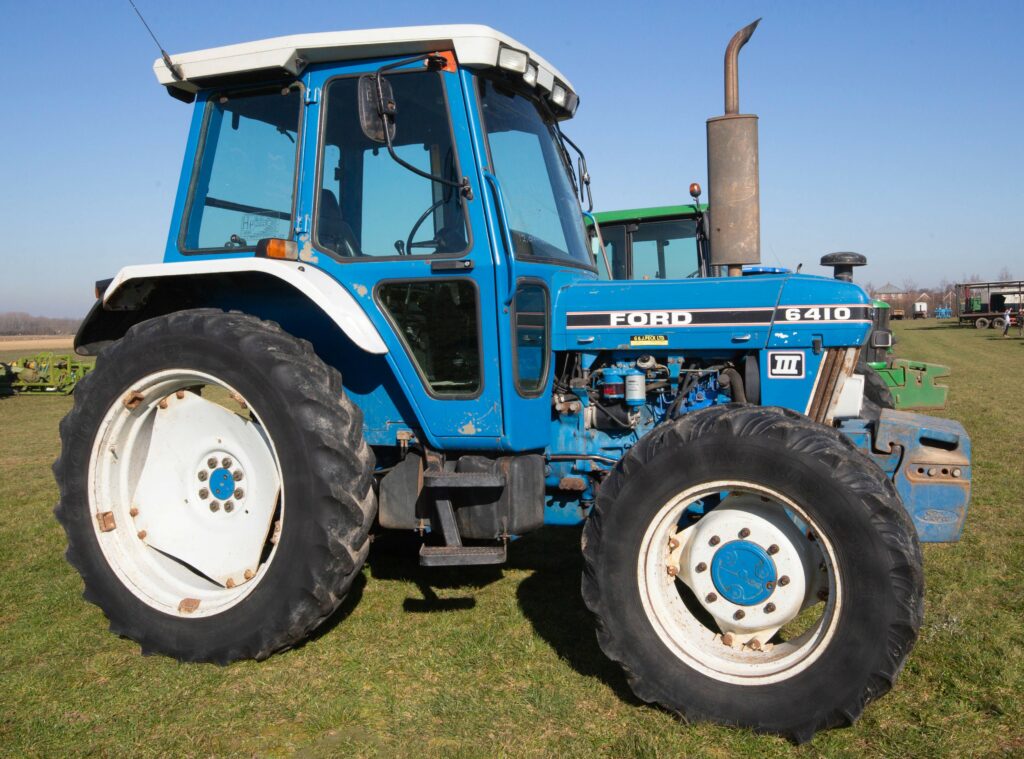 This 1990 Ford 6410 (below) was described as follows: Generation III; Super Q cab; front weights; 13.6 R38 rear and 12.4 R24 front wheels/tyres; ‘on farm from new’; 12,021 hours. It sold for £9,400.