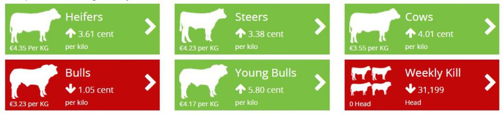The latest beef prices reported to the Department of Agriculture and presented by the AgriLand Beef Price Tool show that there has been a widespread increase in the returns issued to farmers.