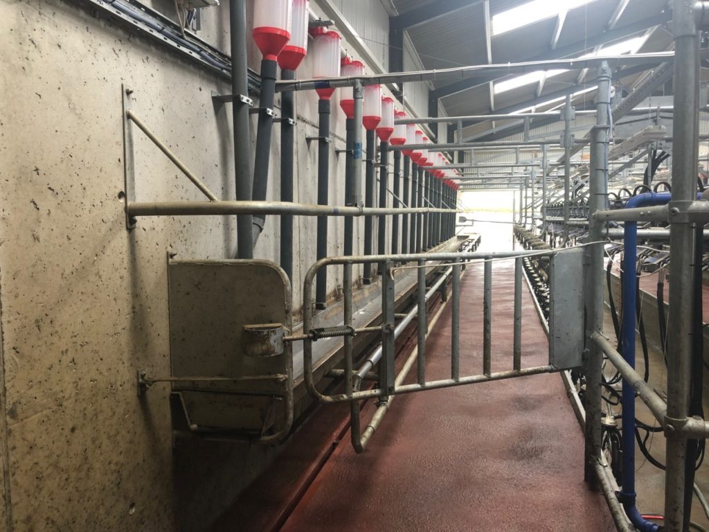 While the other section is where the cows exit the parlour, through the exit race and back out onto the main roadway – which leads to the milking platform. There is also a small pen beside the exit race.