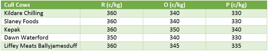 The majority of plants are now sitting at 360/kg for R grade cows, with some plants offering 350c/kg for these lots.