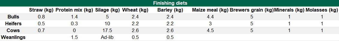 Paul outlined that the inclusion of minerals and a yeast product – to help the animal break down concentrates – was a crucial part of his ration. On the finishing ration, the bulls and heifers have an average daily gain (ADG) of 1.93kg and 1.58kg respectively.