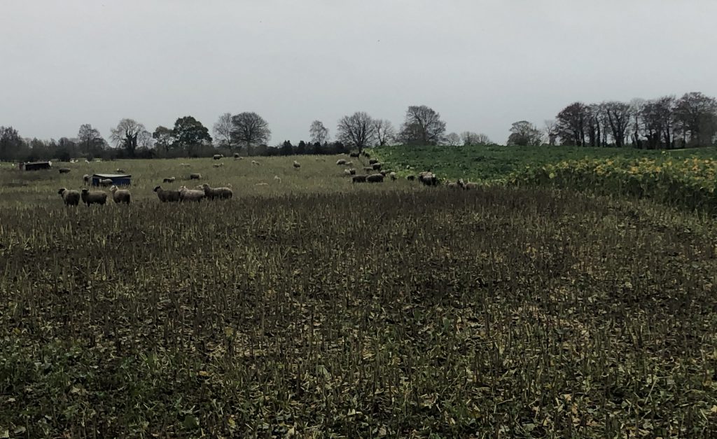 Prior to finishing, the lambs are fed on a field of fodder rape, which is strip grazed, while also being fed meal. Colin is able to put round feeders for silage into the field once it’s grazed and it is then used for feeding in-lamb ewes before they are housed.