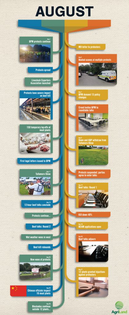 In the midst of the melee, Chinese officials came to town, as planned, to inspect meat plants – tonnage of beef exports to China amounted to just over 1,000t in August.