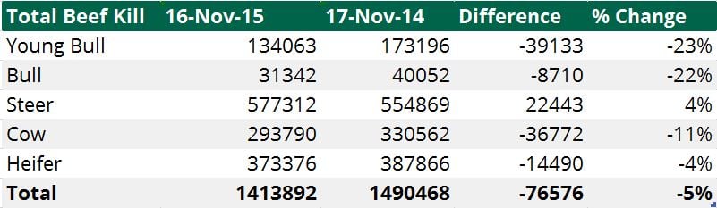 The national beef for the week beginning November 16, 2015 stood at 1.4m.