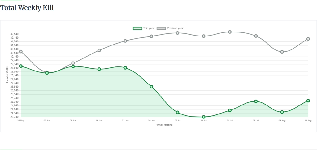 Latest beef kill figures show just under 25,500 head of cattle (excluding veal) were slaughtered in the week ending Sunday, August 17.