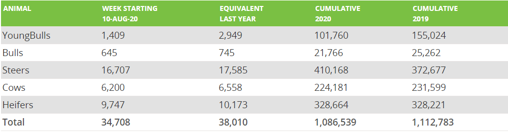 Cumulatively, that brings the total kill for 2020 to 1,086,539 head, which represents a fall of 26,244 head.