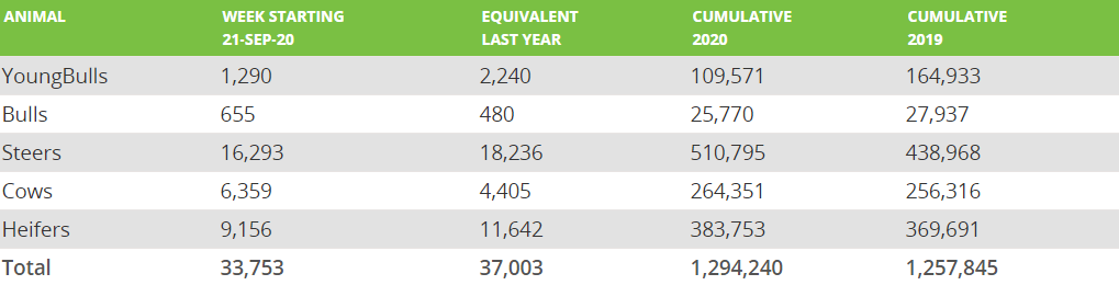 Some 1,294,240 cattle have been slaughtered in Ireland this year – an increase of 36,395 head when compared to the corresponding period in 2019.